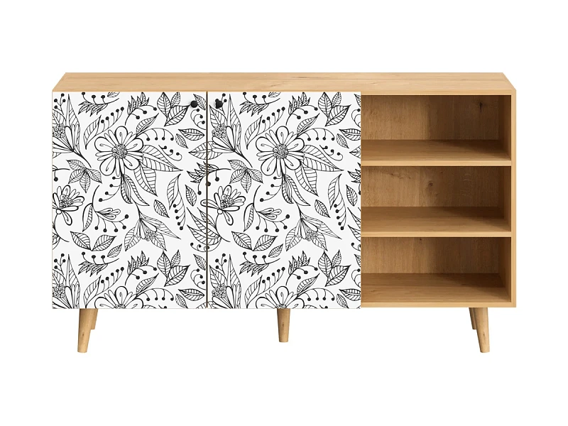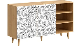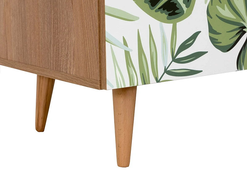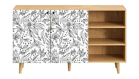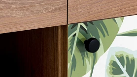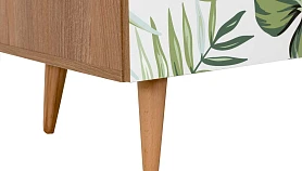 Корпусная мебель, с которой можно составить множество решений для гостиной, детской, кухни, спальни, прихожей, рабочей зоны. Комоды, шкафы, тумбы, столы, витрины, полки, серванты характеризуются универсальностью, многозадачностью, надёжными устойчивыми конструкциями. Имеют выразительный внешний вид, вдохновленный направлением ретро. Смотрятся легко и воздушно за счет деревянных ножек, минимального количества декоративных элементов, спокойных природных оттенков. Их можно использовать в качестве систем хранения, элементов для зонирования, фокусных точек. В дизайне ярко выражена доминанта прямых форм, графичности, лаконичных линий и элегантного исполнения. Что даёт пространству ощущение размеренности, сбалансированности, упорядоченности. Подходят интерьерам как с нейтральной базой, так и локациям с интенсивными цветовыми блоками. Индивидуальности добавят модели с оригинальными паттернами на фасадах. Предметы коллекции Frida гармонично впишутся в эклектичные и стилизованные интерьеры. Ручки входят в стоимость изделия. Высота опор 160 мм. Изображение, нанесенное на фасады, устойчиво к выцветанию, истиранию и влаге. Однако длительное воздействие воды, различных растворителей, спиртосодержащих жидкостей и высоких температур, увеличивают риск повреждения целостности покрытия. Поэтому при использовании необходимо соблюдать ряд правил: 1. Протирайте поверхность с рисунком влажной (но не мокрой) тканью. 2. Используйте мягкие ткани, например, салфетки для стекла или зеркал. 3. Не используйте для обработки поверхности с нанесенным на нее рисунком чистящие порошки и средства, в состав которых входят ацетон, растворитель или спирт. 4. Не используйте металлические губки и щетки с жесткой щетиной. 5. Избегайте ударов, падения, царапания, трения изделий с фотопечатью.