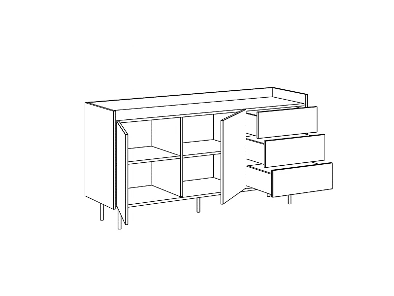 Опоры – металлические, окрашенные черной эмалью, высотой 160 мм., диаметром 20 мм., с пластиковыми подпятниками.Сервант рекомендуется крепить к стене для защиты от опрокидывания (крепежи входят в комплект).