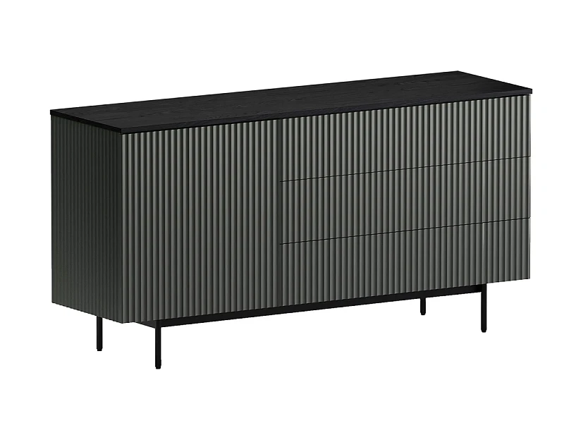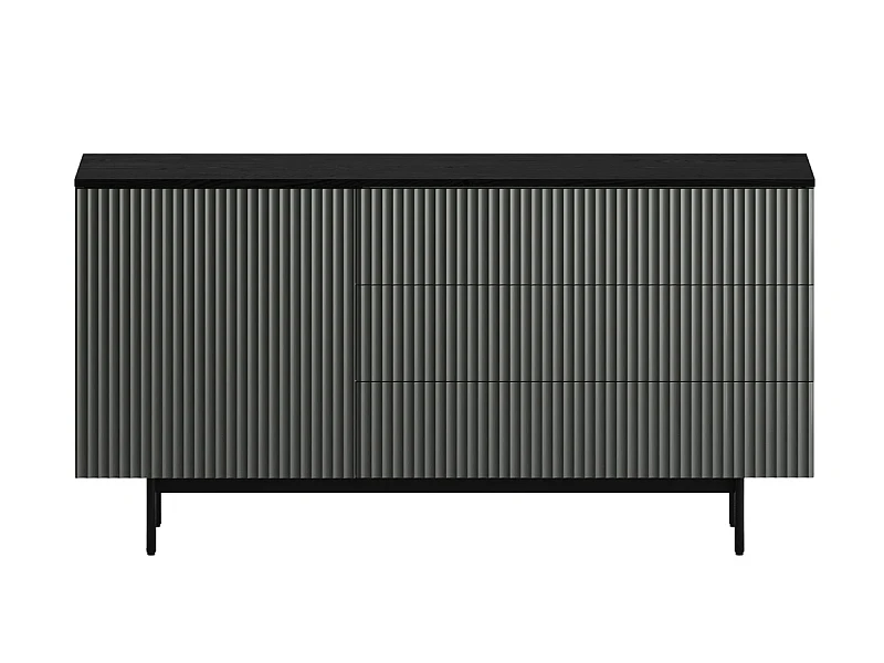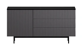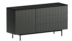 Сервант Mikko разделен вертикальной перегородкой на два отделения, левое за распашной дверью, в правом три ящика на скрытых направляющих, дно ящиков из ЛДСтП 16мм. За дверью одна съёмная полка, перестановка полки по высоте не предусмотрена.