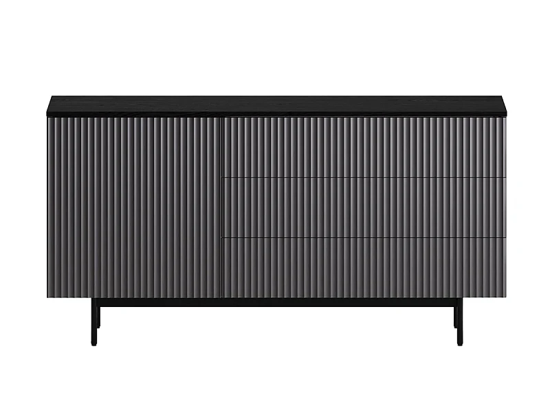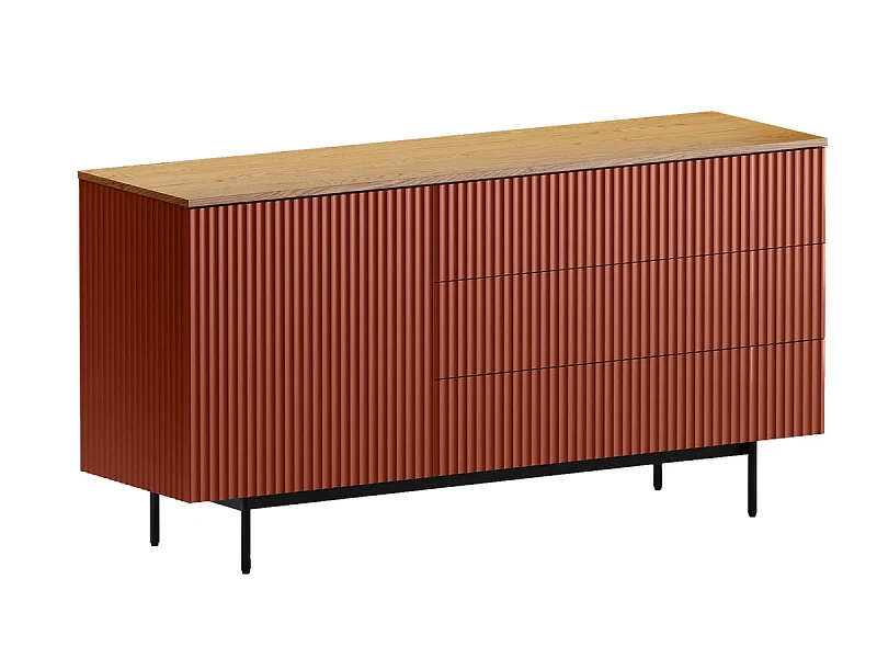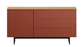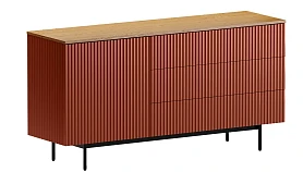Идея дизайна — баланс индустриального характера и органичных элементов. Мебель сочетает в себе прочное металлическое основание, крышку с дубовым шпоном и рельефный фасад с фрезеровкой. Дверцы и ящики открываются легким нажатием. Отсутствие фурнитуры придает моделям аккуратность и ритмичность. Используйте их для хранения книг, техники в гостиной, одежды и текстиля в спальне, важных мелочей в прихожей, документов и канцелярии в рабочей зоне, декоративных вещей в творческой локации. Можете выбрать цвет крышки: светлый или темный. С мебелью Mikko вы грамотно спрячете лишнее и эстетично экспонируете нужное.