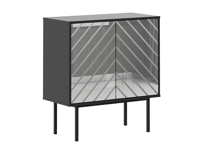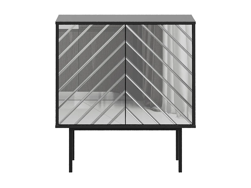 1. Зеркальный: ЛДСП 16мм в декорах, соответствующих корпусам, с наклеенным зеркалом, цветным зеркалом или цветным стеклом в «ёлочку». На дверях кромка шириной 2 мм. черного цвета.