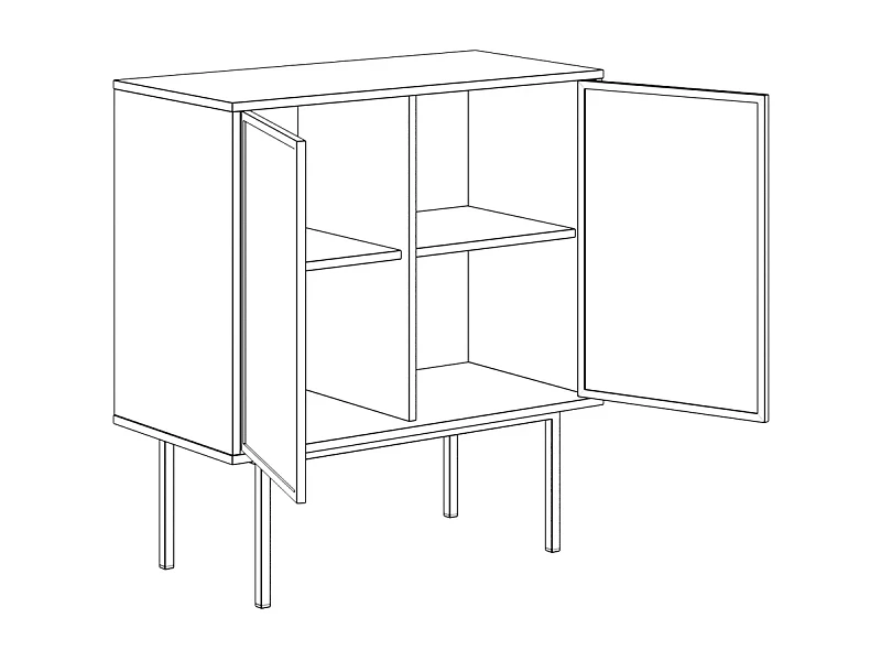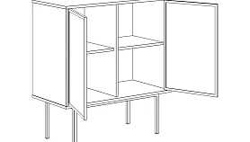 Корпуса установлены на металлические основания - смотрятся легко и элегантно. К тому такое решение упрощает уборку. Основание из трубы 20х20 мм, окрашено в черный цвет. Высота основания - 270 мм, установлено на пластиковые подпятники, что бережет покрытие пола от механических повреждений. Регулировки по высоте нет.