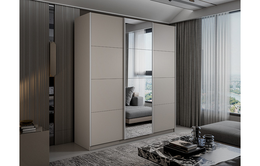 Шкаф-купе ЛЮКС 180х230 с зеркалом / Кашемир