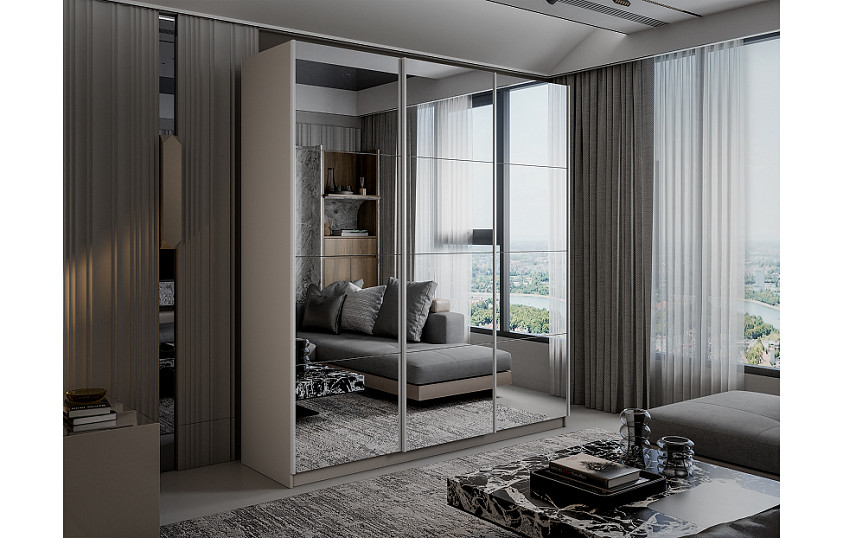 Шкаф-купе ЛЮКС 180х230х57 фасады зеркало / Кашемир
