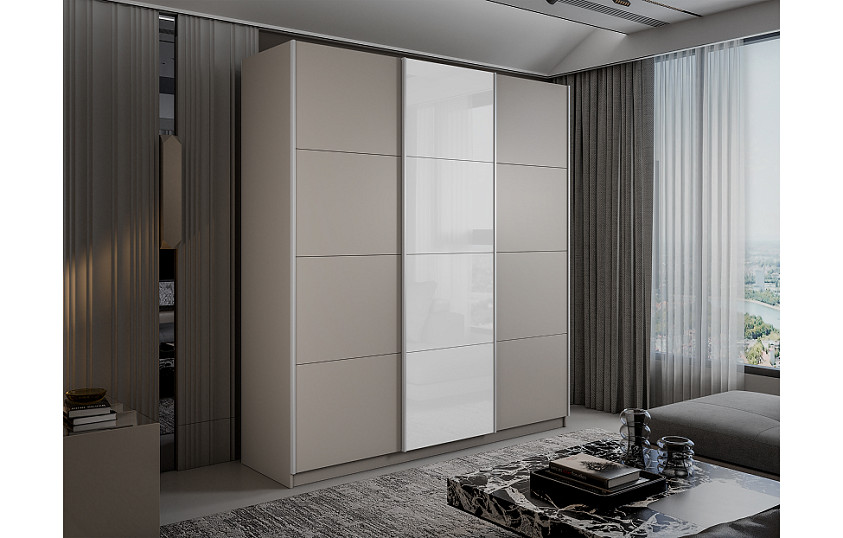 Внутреннее пространство разделено на 3 части — две части объединены в одну, содержат штангу и по 2 ниши сверху и снизу. Третья часть укомплектована пятью полками;
