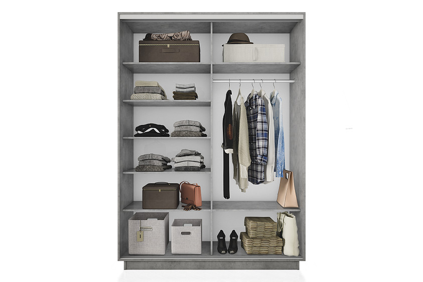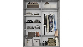 Универсальная перегородка внутри шкафа позволяет менять местами секции: можно расположить секцию со штангой или с полками с любой удобной стороны – справа или слева.