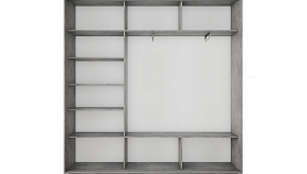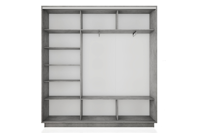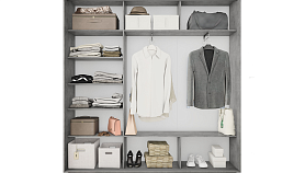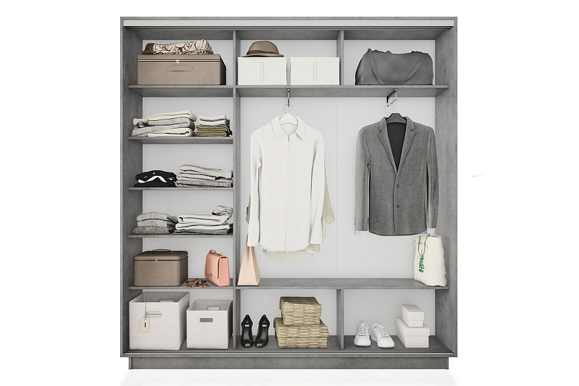 За фасадами три секции: одна с двумя полками и двумя выдвижными штангами, другая — с 5 полками;