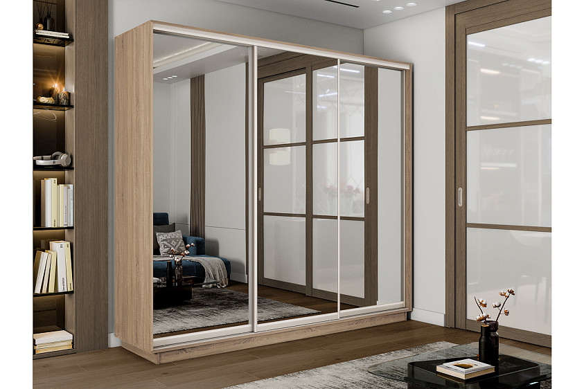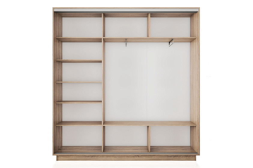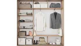 Универсальная перегородка внутри шкафа позволяет менять местами секции: можно расположить секцию со штангой или с полками с любой удобной стороны – справа или слева.