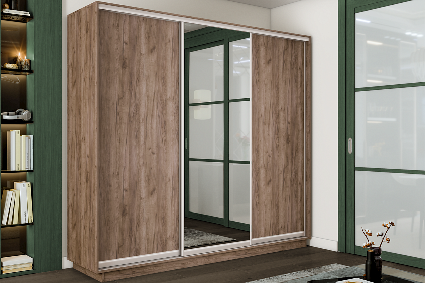 Роликовая система дверей рассчитана на 170 000 тактов «открывание-закрывание». Отдельный цоколь позволяет поставить шкаф вплотную к стене без демонтажа плинтуса. Алюминиевый анодированный профиль надежно защищен от коррозии, а также снижает вес двери и нагрузку на раздвижную систему. Универсальная перегородка внутри шкафа позволяет менять местами секции: можно расположить секцию со штангой или с полками с любой удобной стороны – справа или слева. Безопасные зеркала не осыпаются даже при сильном ударе благодаря противоосколочной пленке. Полкодержатели штифты и "эксцентрик" быстрого монтажа прочно закрепляют полки и не позволяют им переворачиваться при надавливании. Шлегель обеспечивает бесшумное закрывание дверей и защищает внутреннее наполнение шкафа от попадания пыли. Задняя стенка ХДФ изготовлена из плиты высокой прочности, которая не прогнется со временем, а шкаф не деформируется. Ударостойкая кромка ПВХ защищает торцы шкафа от сколов и повреждений. Стальной стопор для дверей устанавливается на нижнем рельсе и обеспечивает мягкую остановку двери и позволяет зафиксировать ее в нужном месте.