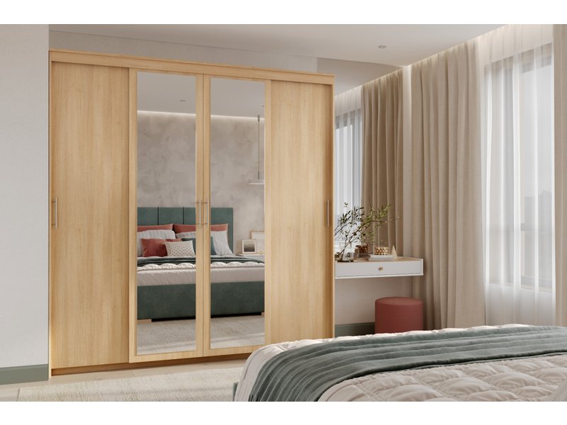 Четырехдверный шкаф "Тебар" - удобная система для упорядоченного хранения одежды. Благодаря солидным габаритам и повышенной вместимости, он без труда вместит гардероб большой семьи. В конструкции шкафа предусмотрены полки и штанги, а фасад украшает большое зеркало, в котором можно рассмотреть себя в полный рост. За дверцами вас ждет продуманное внутреннее наполнение. А наличие ленты-щетки предотвратит попадание пыли внутрь шкафа и обеспечит бесшумное открывание и закрывание створок (данный элемент в базовую комплектацию изделия не входит и приобретается отдельно).