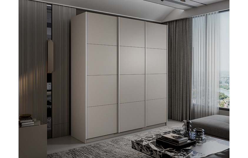 Внутреннее пространство разделено на 3 части — две части объединены в одну, содержат штангу и по 2 ниши сверху и снизу. Третья часть укомплектована пятью полками;