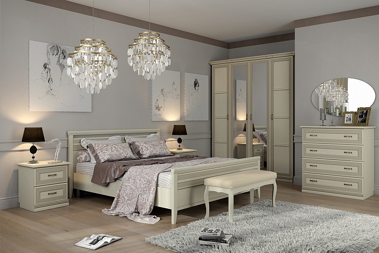 Спальня Адажио выполнена в стиле традиционной итальянской классики. Строгие прямые карнизы, придающие законченность, красивый резной цоколь, изысканно закрывающий опоры, и нежный цвет «валенсия» делают спальню легкой и воздушной;