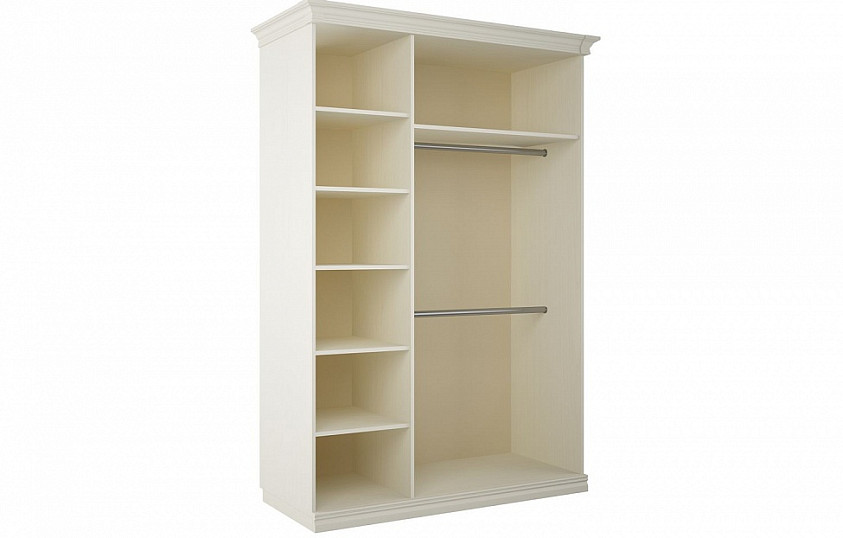 - В узком отделении 5 полок, в широком — одна полка и две штанги для одежды;