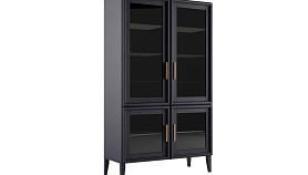 Модель состоит из четырех основных отделений. Верхняя часть комплектуется стеклянными, а нижняя — шпонированными съемными полочками. Стеклянные дверцы позволяют ненавязчиво демонстрировать содержимое окружающим. Петли и направляющие с доводчиками от немецкого бренда Hettich обеспечивают плавную и бесшумную эксплуатацию мебели. Шкаф поставляется в разобранном виде, покупателям доступна доставка и сборка на месте. Изделие устойчиво к опрокидыванию, не нуждается в креплении.