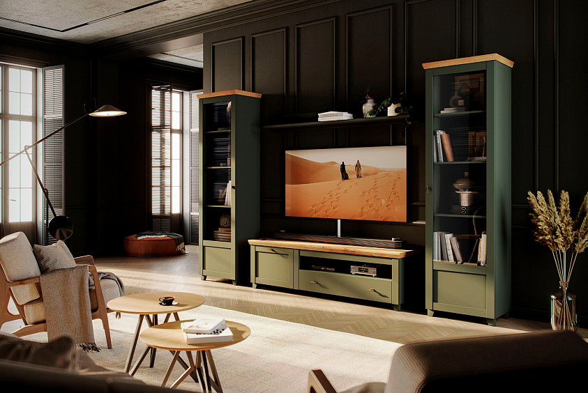 Глубокий благородный оттенок корпуса в сочетании с тёплой древесной крышкой создаёт стильный контраст и добавляет уюта пространству.