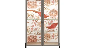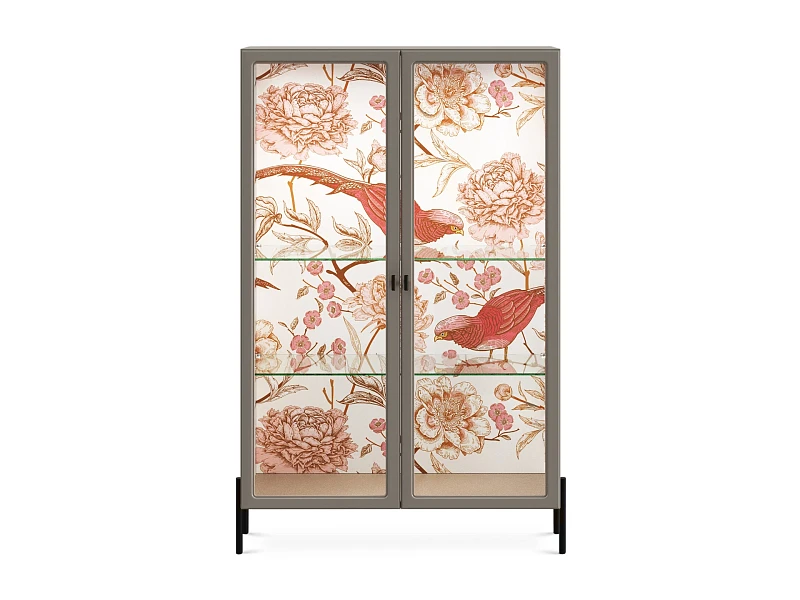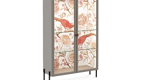 Banksy — коллекция оригинальных шкафов-витрин и сервантов с художественными акцентами. В основе дизайна — дань классическим формам и стремление к актуальным тенденциям. Внушительный корпус балансирует на изящных ножках из металла. Что делает габаритные формы визуально легкими. Также за воздушность отвечают дверцы и полки из стекла. Вместе с внутренней подсветкой они обеспечивают «выставочное» хранение книг, посуды, косметики, декора и других предметов. Изображения в духе шинуазри являются колоритными элементами интерьера. Они моментально притягивают взгляд и становятся фокусной точкой, привнося в пространство разнообразие, таинственность, дух приключений. С помощью Banksy вы поддержите комфорт и индивидуальность как домашних локаций: гостиной, спальни, гардеробной, обеденной группы, так и бизнес-пространств: кафе, студий, салонов, шоурумов.