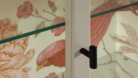 Внутри полки из стекла толщиной 6 мм. Перестановка полок по высоте не предусмотрена.