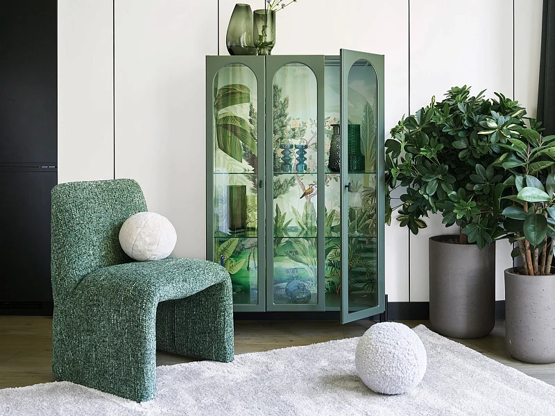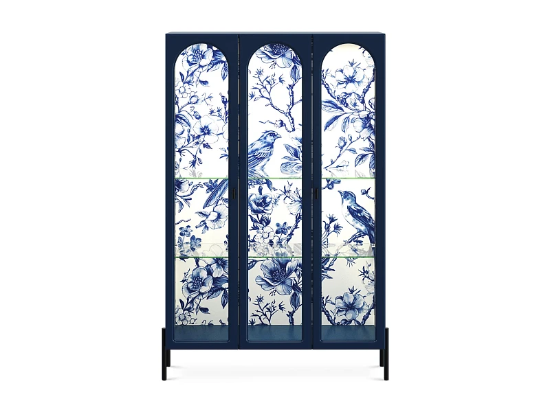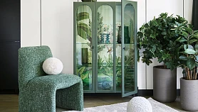 Banksy — коллекция оригинальных шкафов-витрин и сервантов с художественными акцентами. В основе дизайна — дань классическим формам и стремление к актуальным тенденциям. Внушительный корпус балансирует на изящных ножках из металла. Что делает габаритные формы визуально легкими. Также за воздушность отвечают дверцы и полки из стекла. Вместе с внутренней подсветкой они обеспечивают «выставочное» хранение книг, посуды, косметики, декора и других предметов. Изображения в духе шинуазри являются колоритными элементами интерьера. Они моментально притягивают взгляд и становятся фокусной точкой, привнося в пространство разнообразие, таинственность, дух приключений. С помощью Banksy вы поддержите комфорт и индивидуальность как домашних локаций: гостиной, спальни, гардеробной, обеденной группы, так и бизнес-пространств: кафе, студий, салонов, шоурумов.