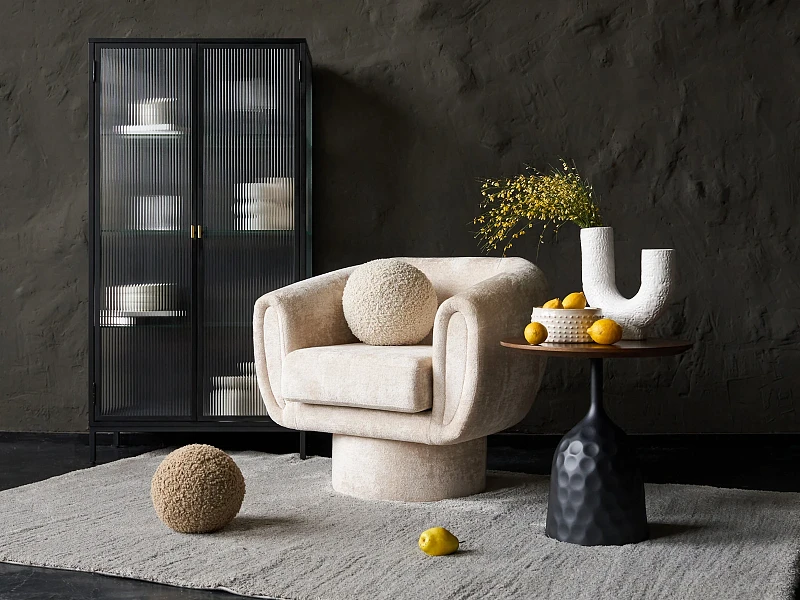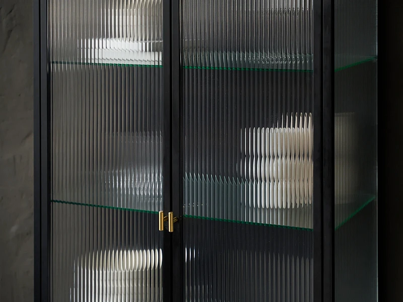 Витрина The One сочетает в себе элегантный дизайн с большим количеством функциональных возможностей. «Прозрачная» архитектура — вдохновение винтажными буфетами и витринами 50-60-х годов. Черный алюминевый профиль добавляет эстетики лофта и гранжа. На фасадах и боковых рамах — рифленое стекло, позволяющее организовать «музейное» хранение любых вещей. Используйте его в качестве фокусной точки в столовой для «выставки» необычной посуды, в гостиной для коллекции редких изданий или в ванной для парфюмерии и косметики. Универсальный характер витрины The One подходит для оформления бьюти и лаундж-зон, творческих мастерских и креативных пространств. Хорошо работает как самостоятельный предмет интерьера, так и в паре с сервантом The One.