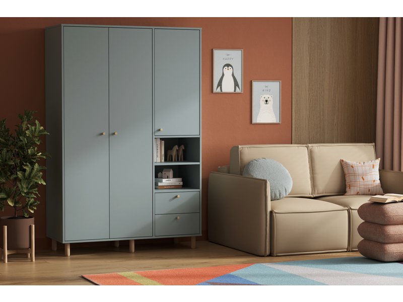 Распашной шкаф Дикинс 3-124x190 Серо-зеленый