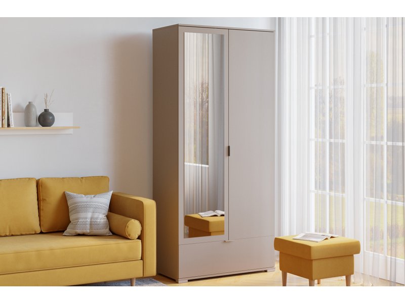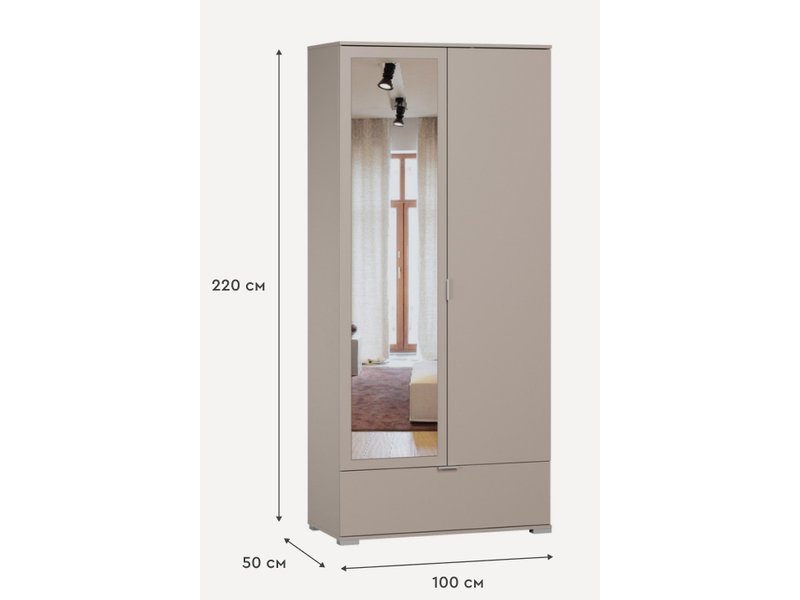 Распашной шкаф Стелла 2.1-100x220 Латте с зеркалом