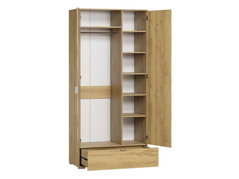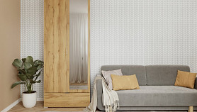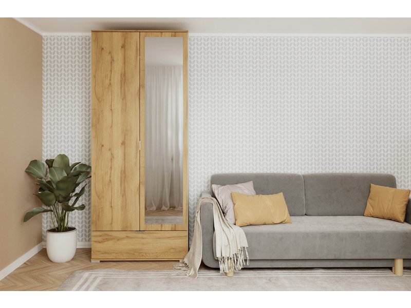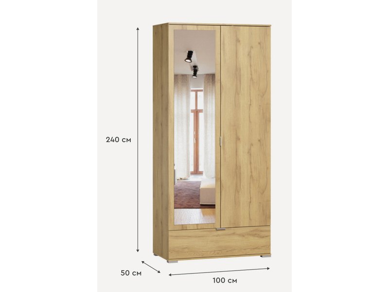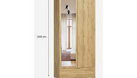 Распашной шкаф Стелла 2.1-100x240 Дуб Золотистый с зеркалом
