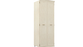 Двустворчатая модель с просторными отделениями комплектуется планкой, полкой и встроенной штангой для вешалок. Дополнительно покупатель может приобрести полки-модули, оформленные в аналогичном дизайне, а также боковые колонны. Кромки меблировки облицованы надежным и качественным материалом. Петли оснащены демпфером, обеспечивающим плавное и бесшумное движение створок.