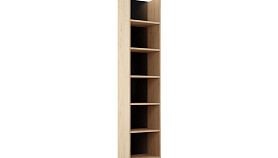 Напольный шкаф-витрина рамочной конструкции, текстурированный под древесину, отлично дополнит детскую, спальню или гостиную комнату в скандинавском стиле, стиле эко-минимализм или industrial. Визуально мебель поделена распашными дверцами на два отделения, но внутри состоит из единого отсека с шестью полками. При этом верхняя крышка приобретается отдельно, исходя из количества рядом расположенных шкафов.