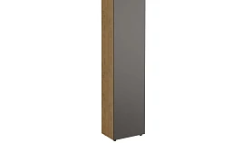 Шкаф Modus состоит из корпуса и фасада. Корпус с проходным нижним и верхним щитом установлен на опоры. Опоры регулируемые, пластик черный, круглые. Корпус горизонтальной стенкой разделен на два отделения по высоте. Верхнее отделение оснащено одной съёмной полкой с перестановкой по высоте в 3 положения. Нижнее отделение оснащено выдвижной штангой для хранения одежды на плечиках и съёмной полкой для обуви. Максимальная нагрузка на одну полку не должна превышать 8кг, на штангу выдвижную – 4,5 кг. Фасад представляет собой распашную дверь, которая открывается по принципу «нажал-открыл».