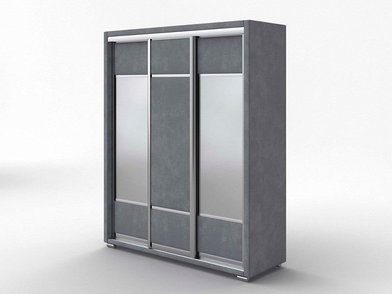 Шкаф Орматек Шкаф-купе 3х дв Orma Soft 2 (2 зеркала) (Ткань: Микровелюр Laska 06 Серый мох) 177x60