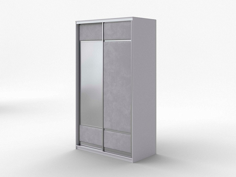 Шкаф Шкаф-купе 2х дв Como/Veda (1 зеркало) (ЛДСП Белая+ткань Белый/Laska 05 Утренний туман) 119x62
