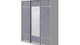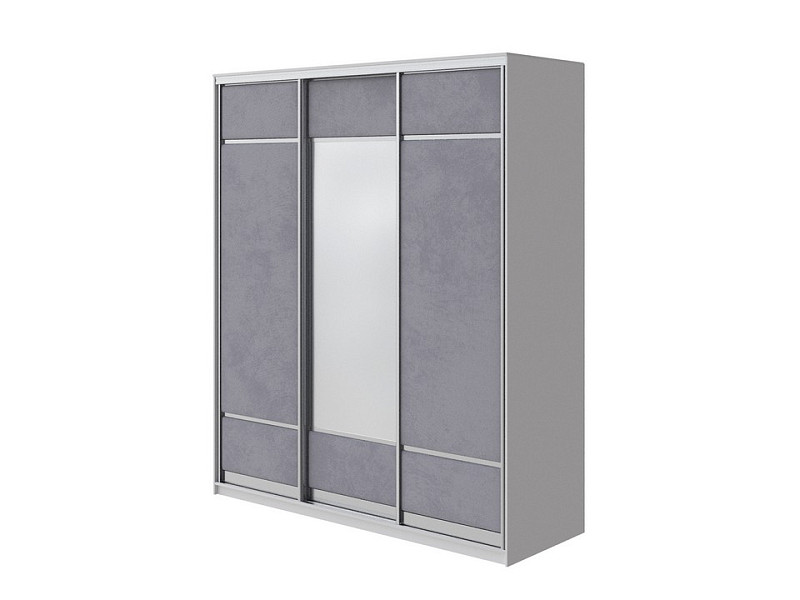 Шкаф Шкаф-купе 3х дв Como/Veda (1 зеркало) (ЛДСП Белая+ткань Белый/Teddy 318 Мокрый асфальт/Серебро) 177x62