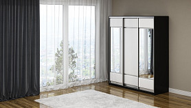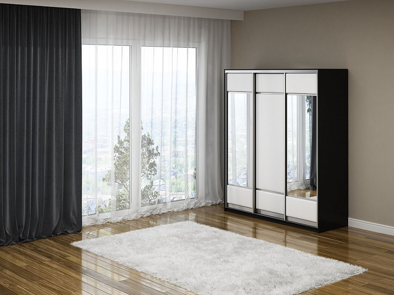Шкаф Шкаф-купе 3х дв Como/Veda (2 зеркала) (ЛДСП Черная+экокожа Черный/Белый) 177x62