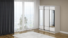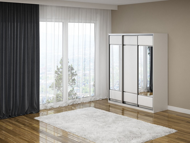 Шкаф Шкаф-купе 3х дв Como/Veda (2 зеркала) (ЛДСП Черная+экокожа Черный/Черный) 177x62