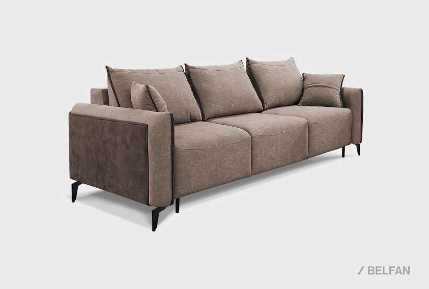 «Соренто» (Sorento) - это современный диван, который прекрасно смотрится как в современном лофте, так и в классическом интерьере. Благодаря прямым линиям боковин, декоративным швам и канту вдоль подушек и боковин создается яркий визуальный акцент. Не смотря на свою лаконичность, диван трехместный невероятно мягкий - так и хочется утонуть в его объемных подушках.