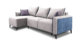 "Соренто" диван с оттоманкой; раскл.; "Тик-так" (1480х2310); левый; металл черный; Salvador 13 Silver+Maverick col 18+ Salvador 17 Denim (гр. 1/МТХ)