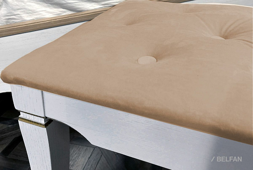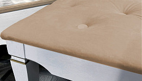 ? Эффектное сидение банкетки, изготовленное из мягкого велюра с каретной стяжкой.