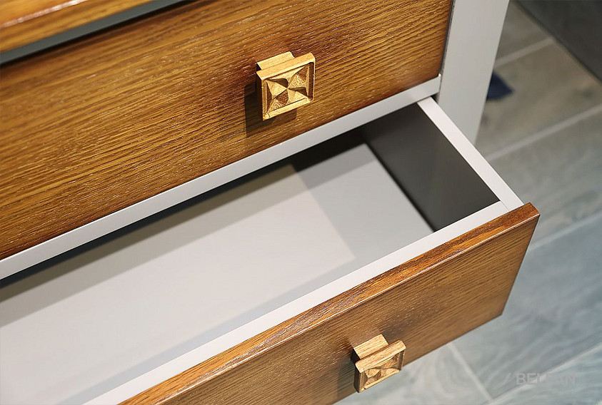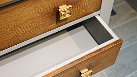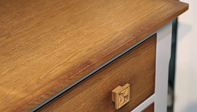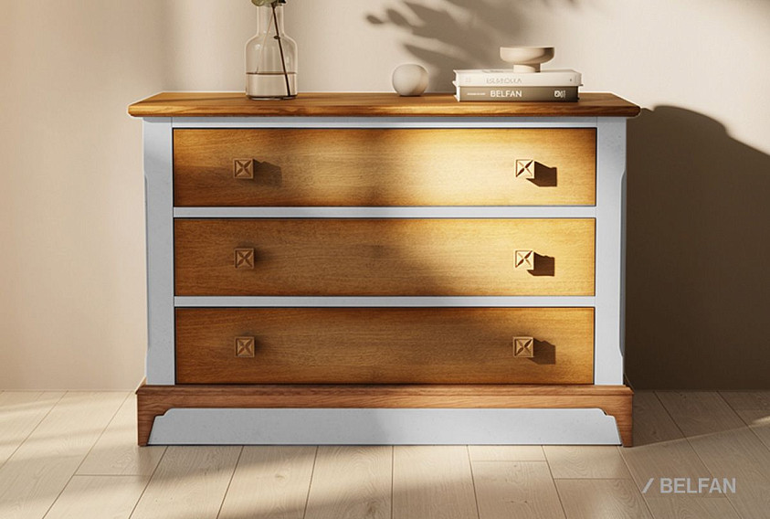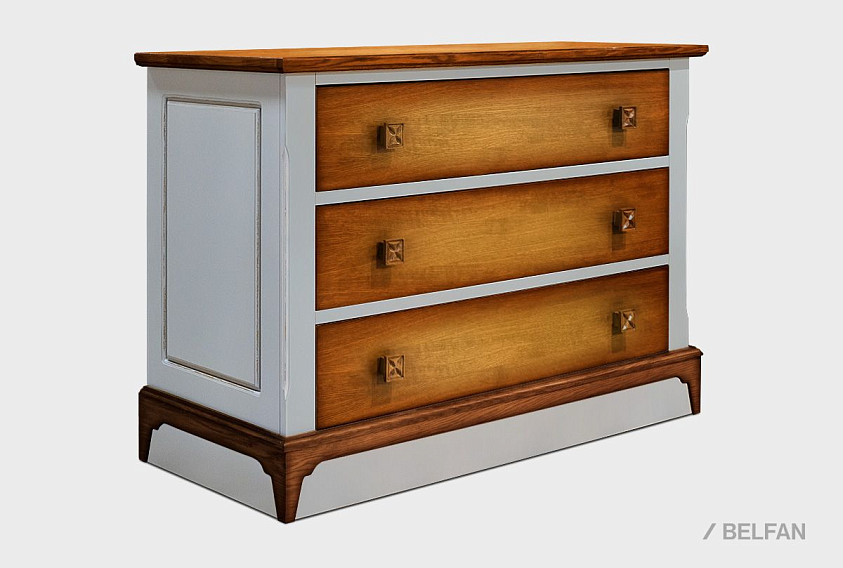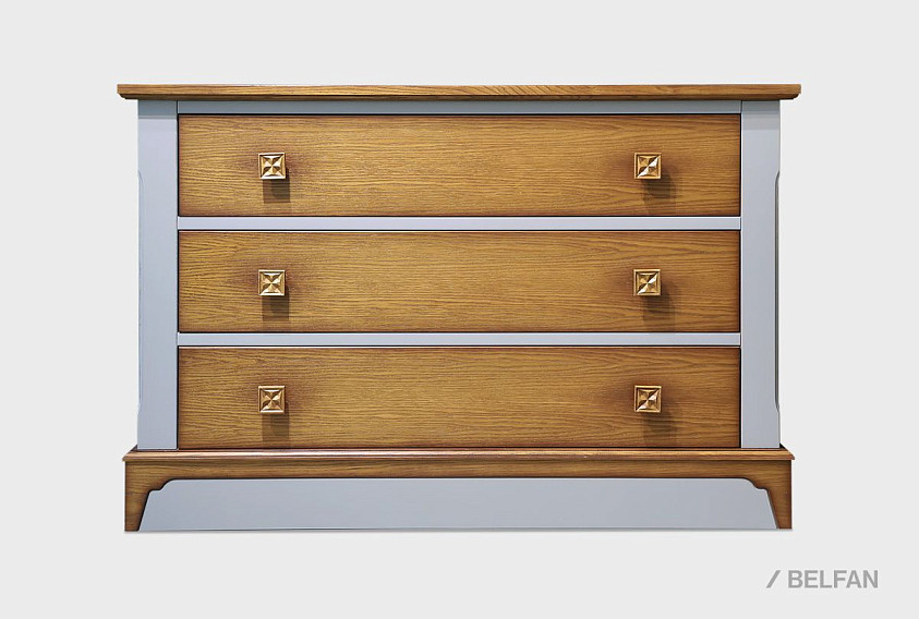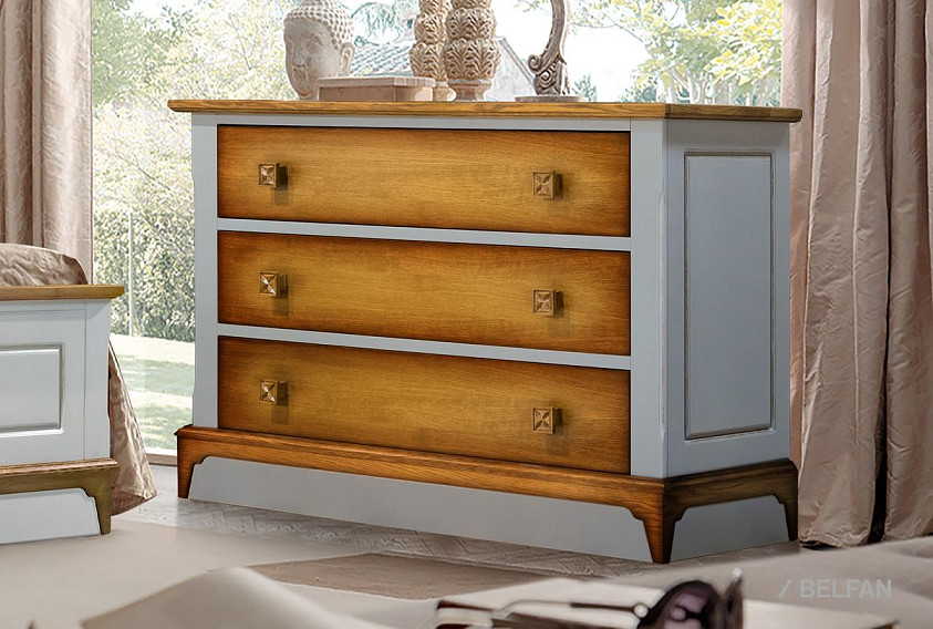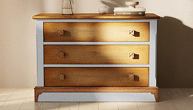 Комод из коллекции Бриансон прекрасен в своей незамысловатости. Простые формы и четкие линии лишь слегка разбавлены декоративными элементами. Три выдвижных ящика с направляющими полного выдвижения позволяют выдвигать ящики полностью и задействовать для хранения вещей всю их площадь.