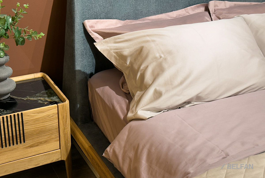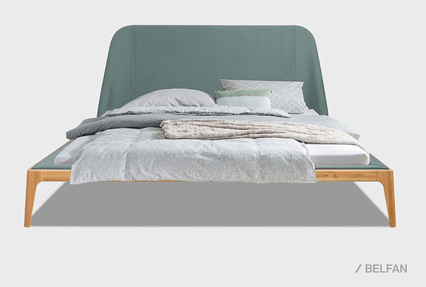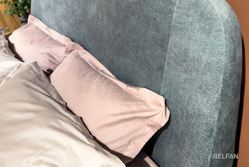 Кровать "Бергамо" (мягкое изголовье); без основания, без матраса; (1600x2000); дуб натуральный; Infinity 13 Jadeite