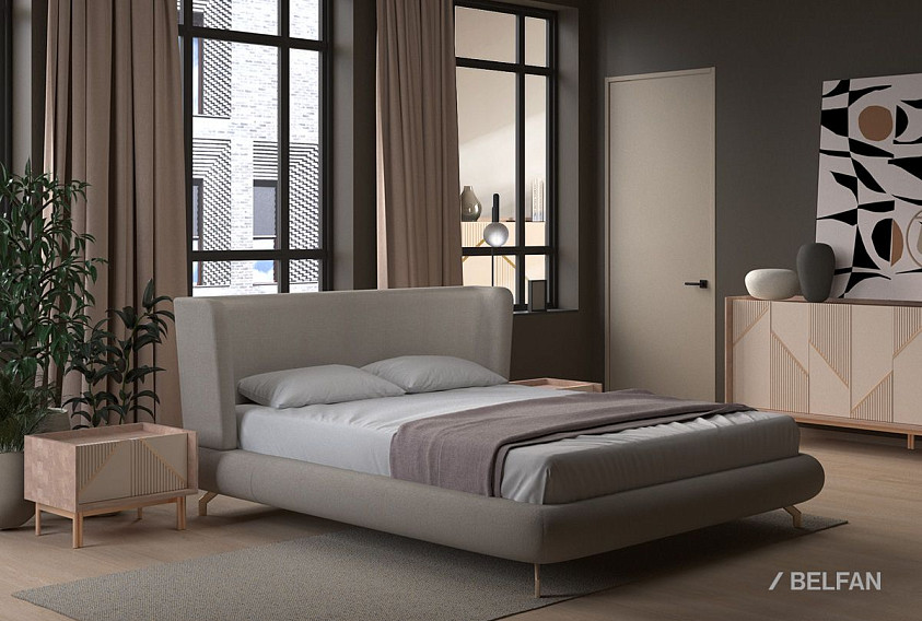 ? Кровать выполнена в современном минималистичном дизайне