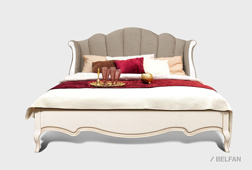 * Цвет Кровати «Белая эмаль с золотой патиной» - Цвет Бельевого ящика «Поры дерева», «Белый фоновый 999».
