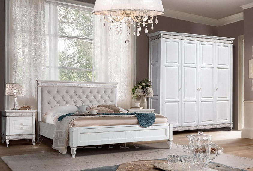 Кровать "Сиена" (мягкое изголовье); без основания, без матраса; (1600x2000); шампань; Tiffany 01 Cream