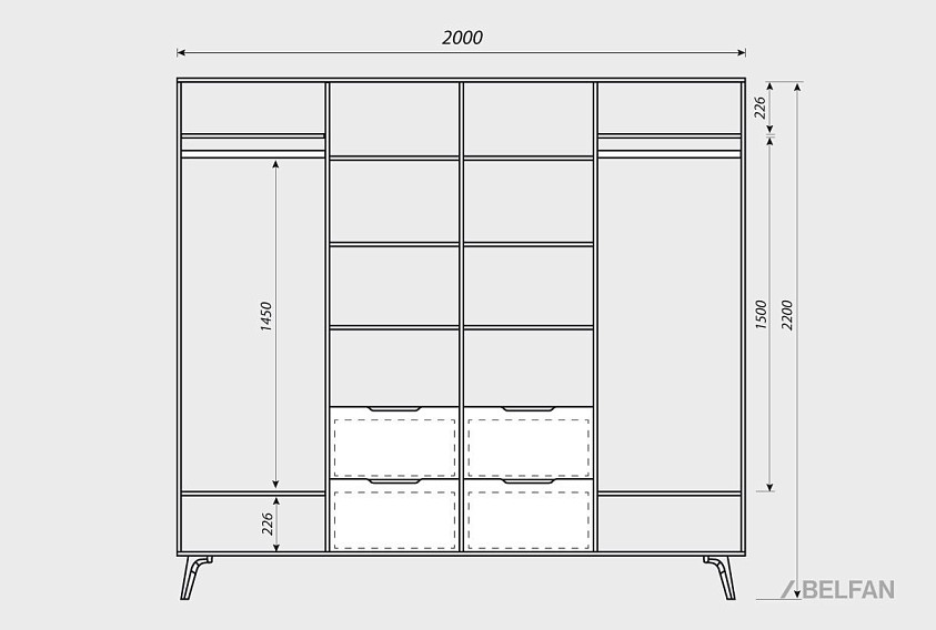 Схема шкафа 4-х дверного Elva: