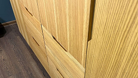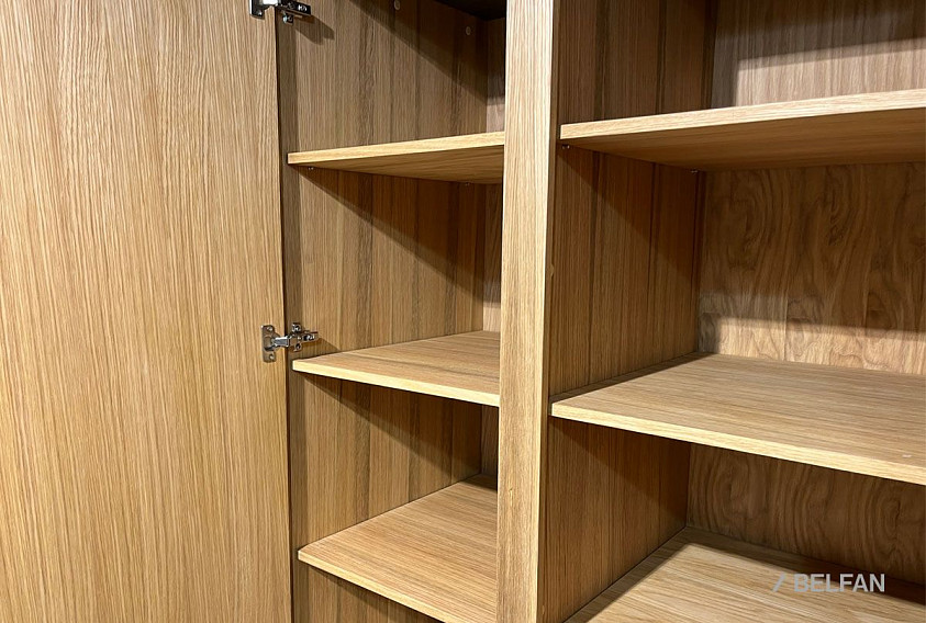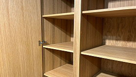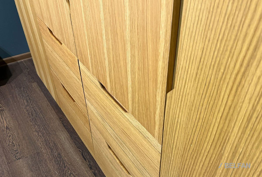 ? Шкаф изготовлен из массива и шпона дуба.
