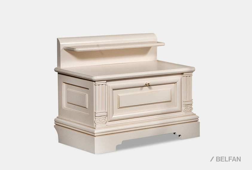 Мебель для классического интерьера обычно изготавливается из ценных пород деревьев. Не стала исключением и прикроватная тумба "Престиж" ГМ 5983 из массива берёзы, которая выступает в качестве великолепного дополнения к кровати из коллекции "Престиж". Резные филенки добавляют классическому декору элегантности и роскоши. Обладая вместительным выдвижным ящиком, полочкой для мелочей и оформленная в благородном цветовом оттенке "мокко" – тумбочка прекрасно совмещает все достоинства системы хранения и одновременно является важной деталью интерьера.