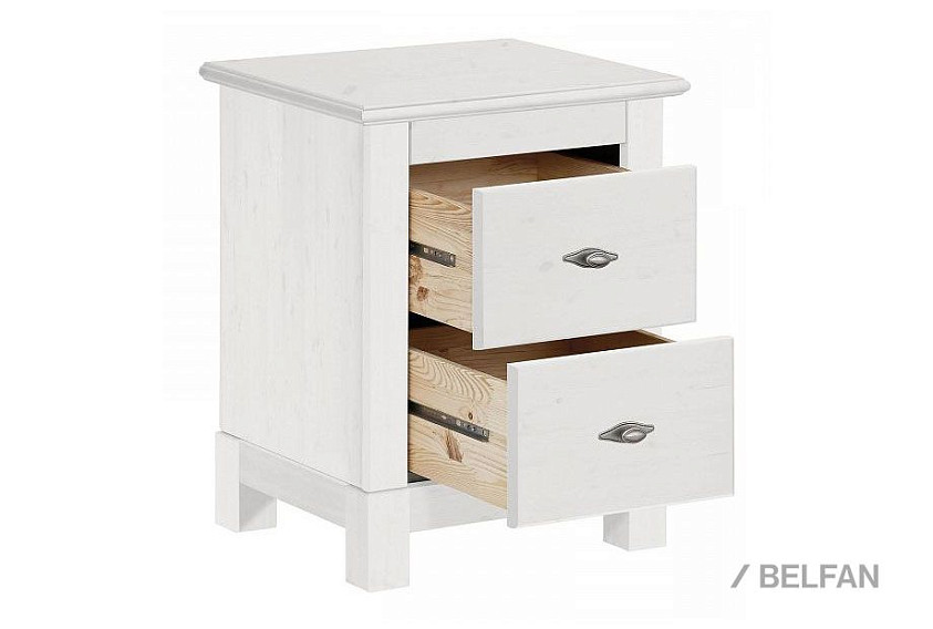 Тумба прикроватная «Рауна» 02 для Вашей спальни в стиле Прованс. Имеет достаточное пространство для лампы, книг и журналов. В ящиках вы также можете хранить все, что вы хотите от посторонних взглядов.