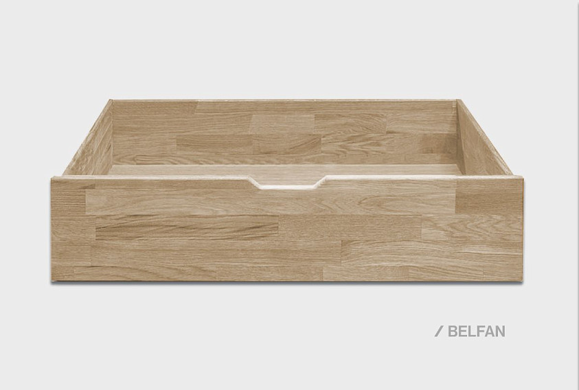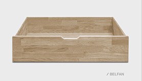 Удобный бельевой ящик «Берген», который замечательно смотрится в комплекте с кроватью «Берген» С. Поскольку глубина ящика всего 600 мм, то с каждой стороны кровати можно поставить по одному такому ящику. Это поможет использовать свободное пространство более эргономично. Благодаря роликам, ящик легко перемещается, а экологичная отделка натурального дуба бейц-маслом позволит не беспокоиться о здоровье.