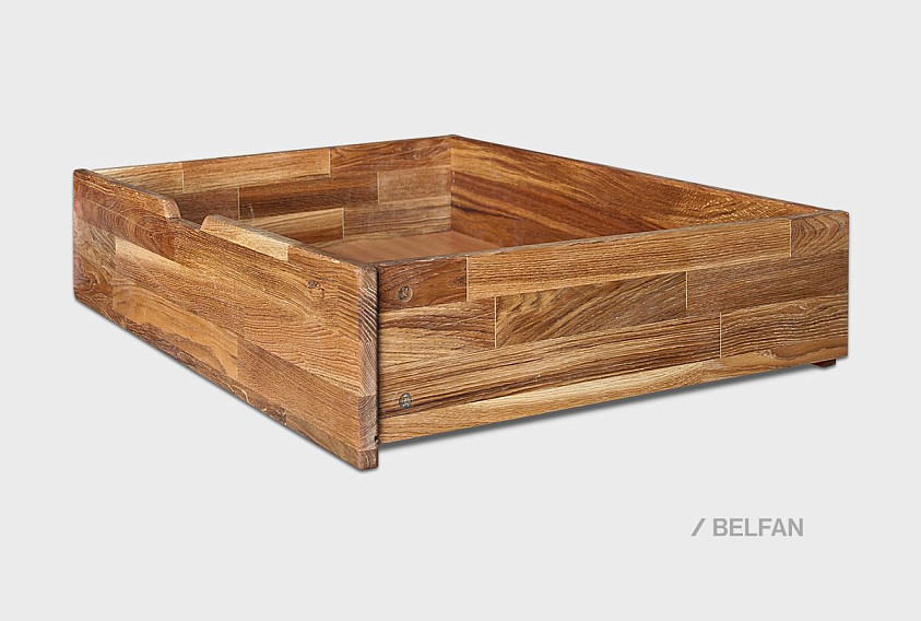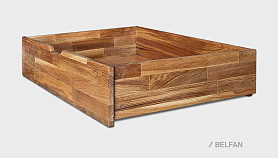 Удобный бельевой ящик «Берген», который замечательно смотрится в комплекте с кроватью «Берген» С. Поскольку глубина ящика всего 600 мм, то с каждой стороны кровати можно поставить по одному такому ящику. Это поможет использовать свободное пространство более эргономично. Благодаря роликам, ящик легко перемещается, а экологичная отделка натурального дуба бейц-маслом позволит не беспокоиться о здоровье.