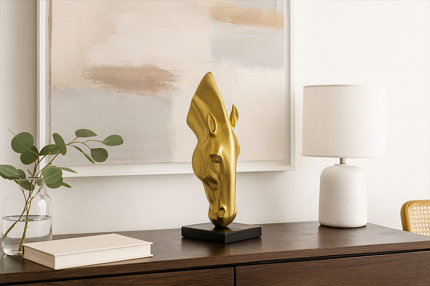 TB4115 Статуэтка "Голова лошади" цвет золото 15*15*41см