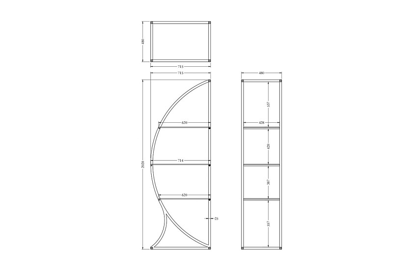 KFG087/2 Стеллаж "Полусфера" прозрачное стекло/золото матовый 71*48*202см